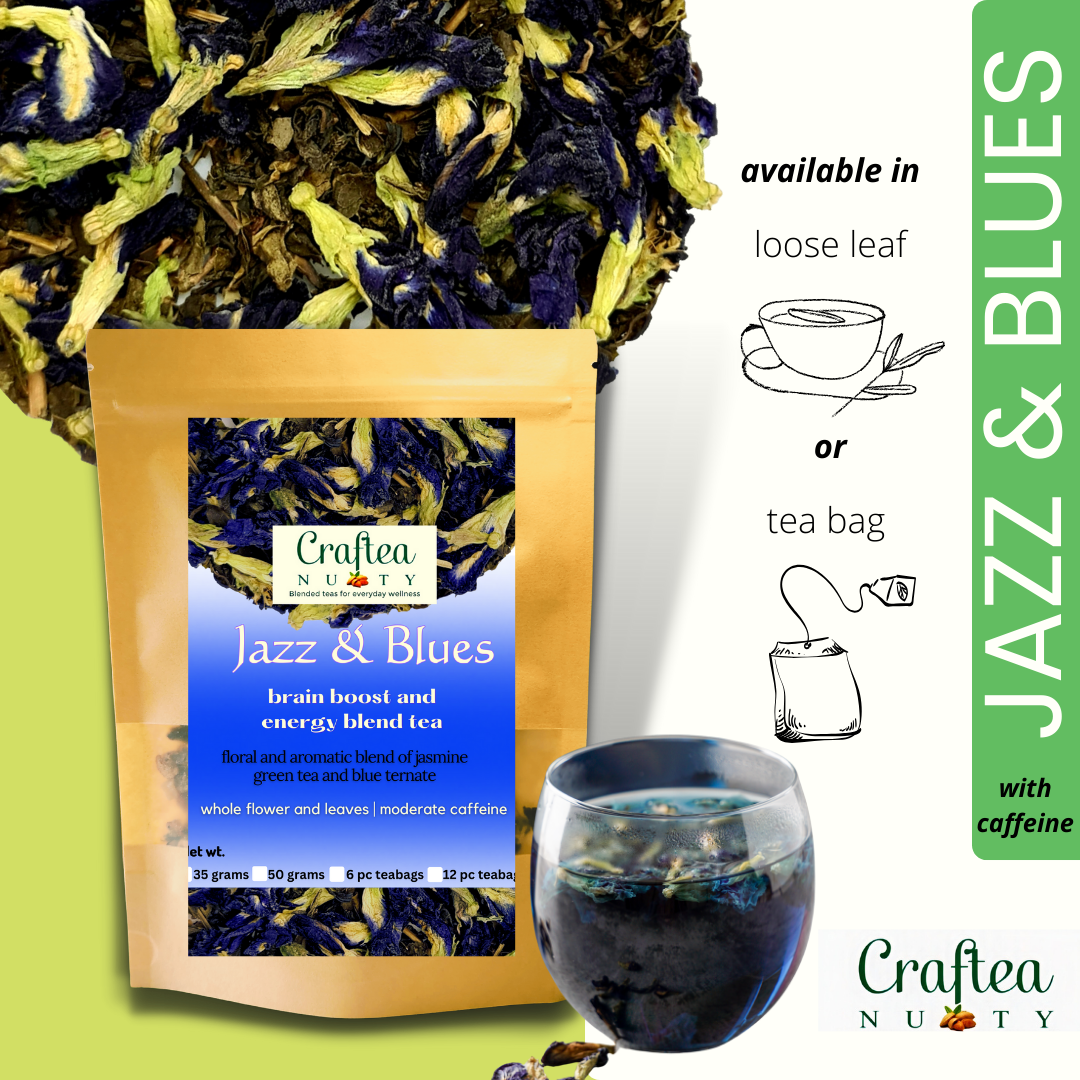 Jazz and Blues Butterfly Pea Jasmine Loose Leaf Tea Clitoria Ternatea