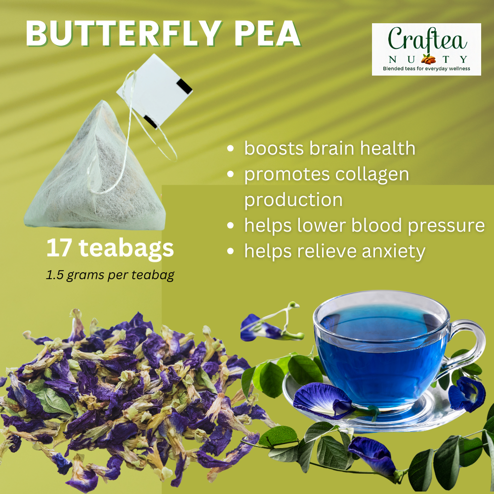 butterfly pea - 17 teabags (caffeine-free) perfect for eye and brain health and glowing skin