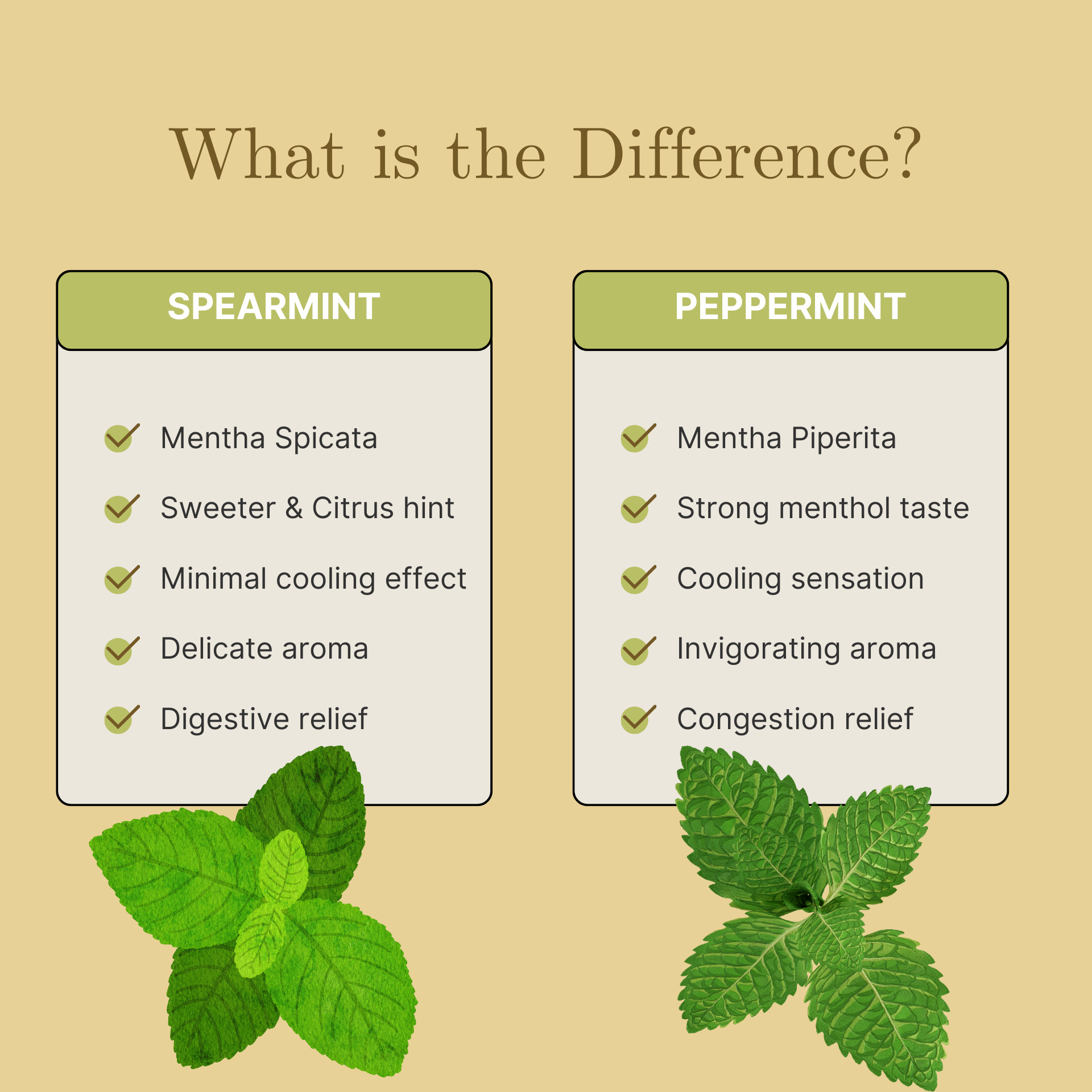 - Our Spearmint Tea is made from handpicked Mentha spicata leaves, renowned for their exceptional flavor and aromatic profile. Each cup guarantees a pure and invigorating taste that will uplift your senses.