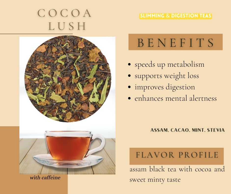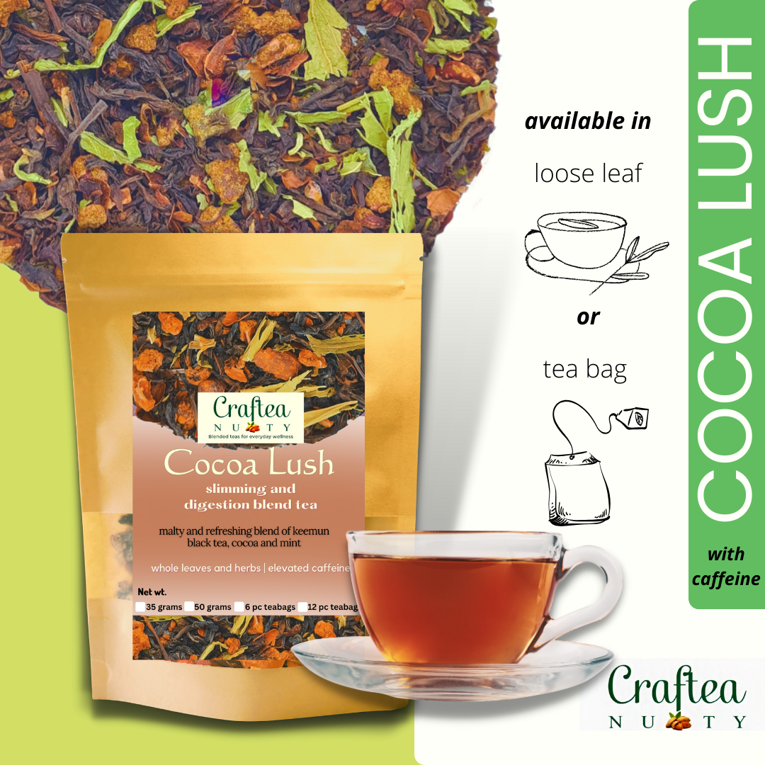 tea blend Cocoa Lush Black Tea with cocoa Nibs and Mint