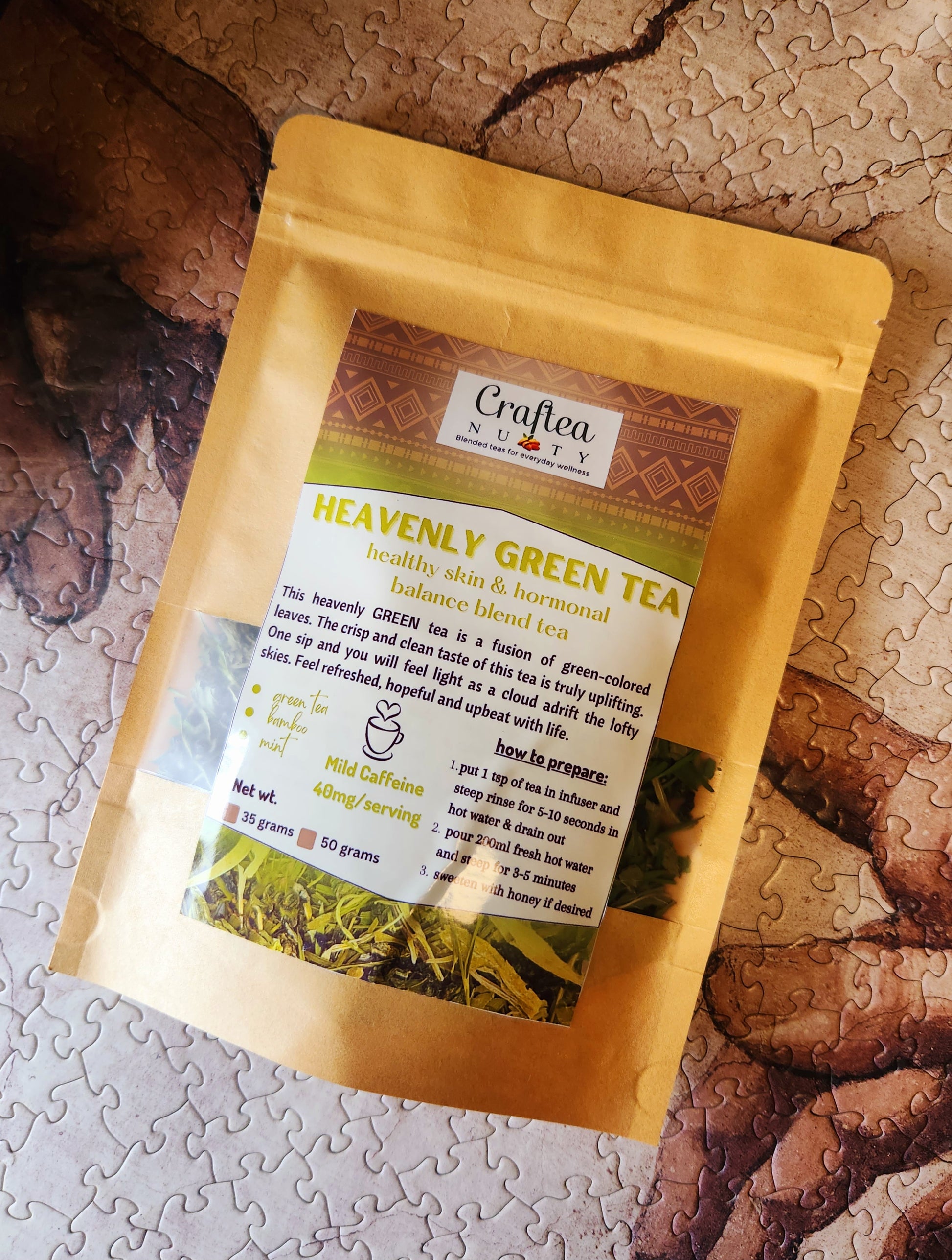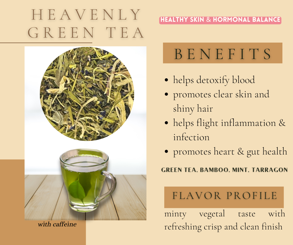 This heavenly GREEN tea is a fusion of green-colored leaves. Green is refreshing. Green is hope. Green is life looking above the blue skies. The crisp and clean taste of this tea is truly uplifting. One sip and you will feel light as a cloud adrift the lofty skies. Feel refreshed, hopeful and upbeat with life. Green tea protects the heart by reducing clot formation and it improves level of good cholesterol. Rich in Theanine which induces relaxation. Bamboo leaf is rich in fiber that cleanses bloodstream and lowers cholesterol. It is also rich in silica which promotes skin and hair health. Mint is an aromatic herb which is great in clearing lung congestions. It also has a calming effect which relieves anxiety.