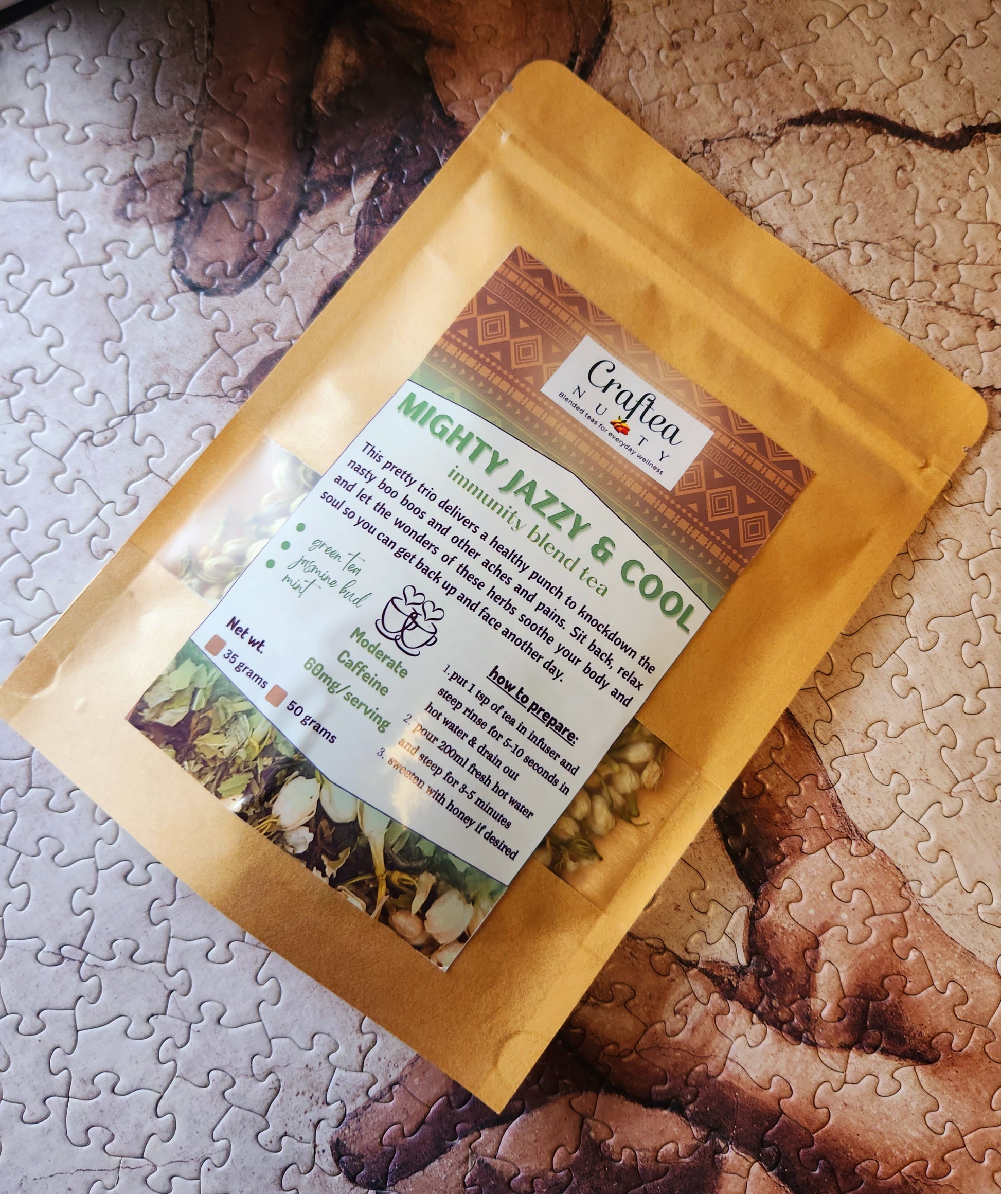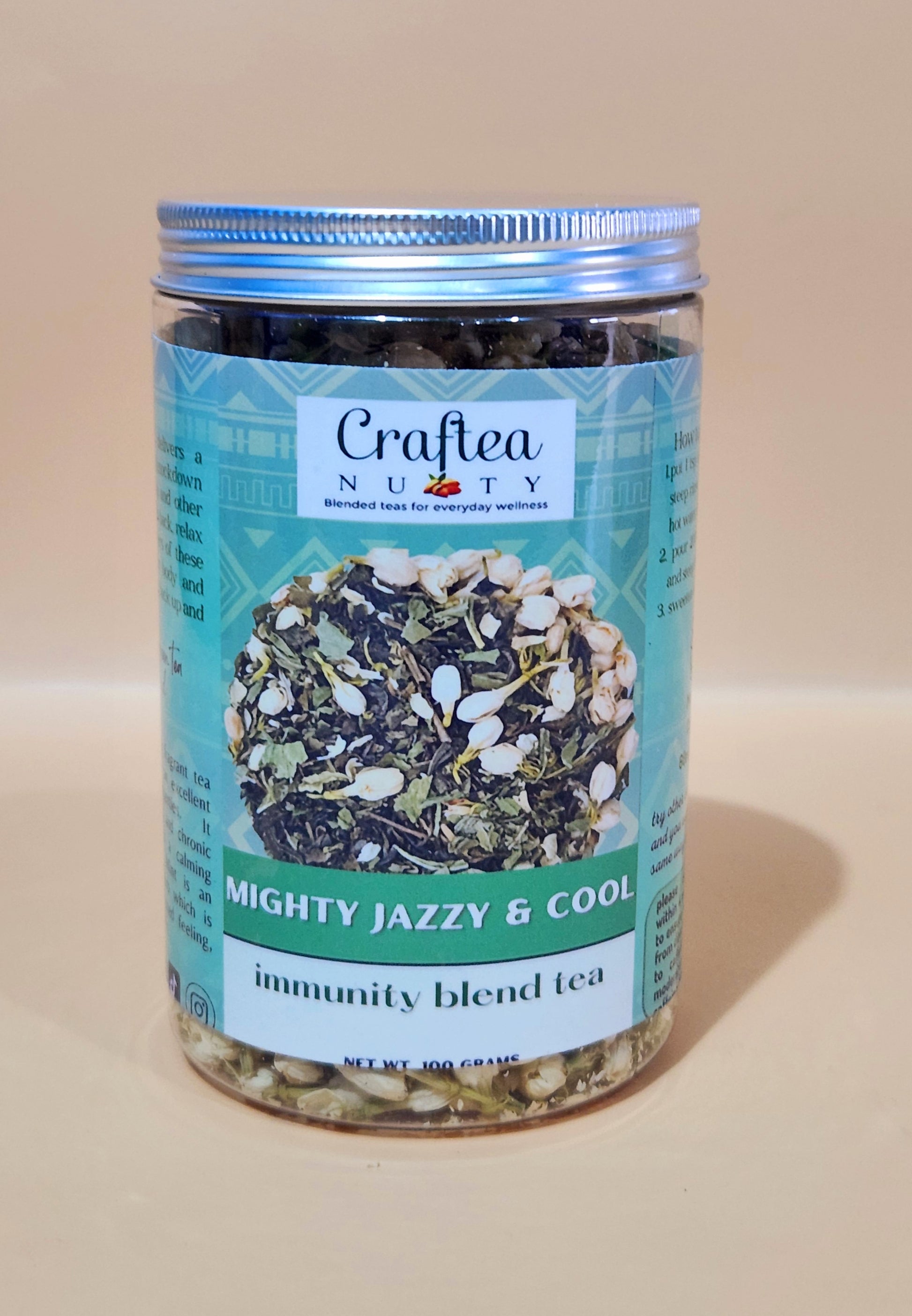 tea blend Mighty Jazzy and Cool Jasmine Green Tea with Mint Bud Loose Leaf